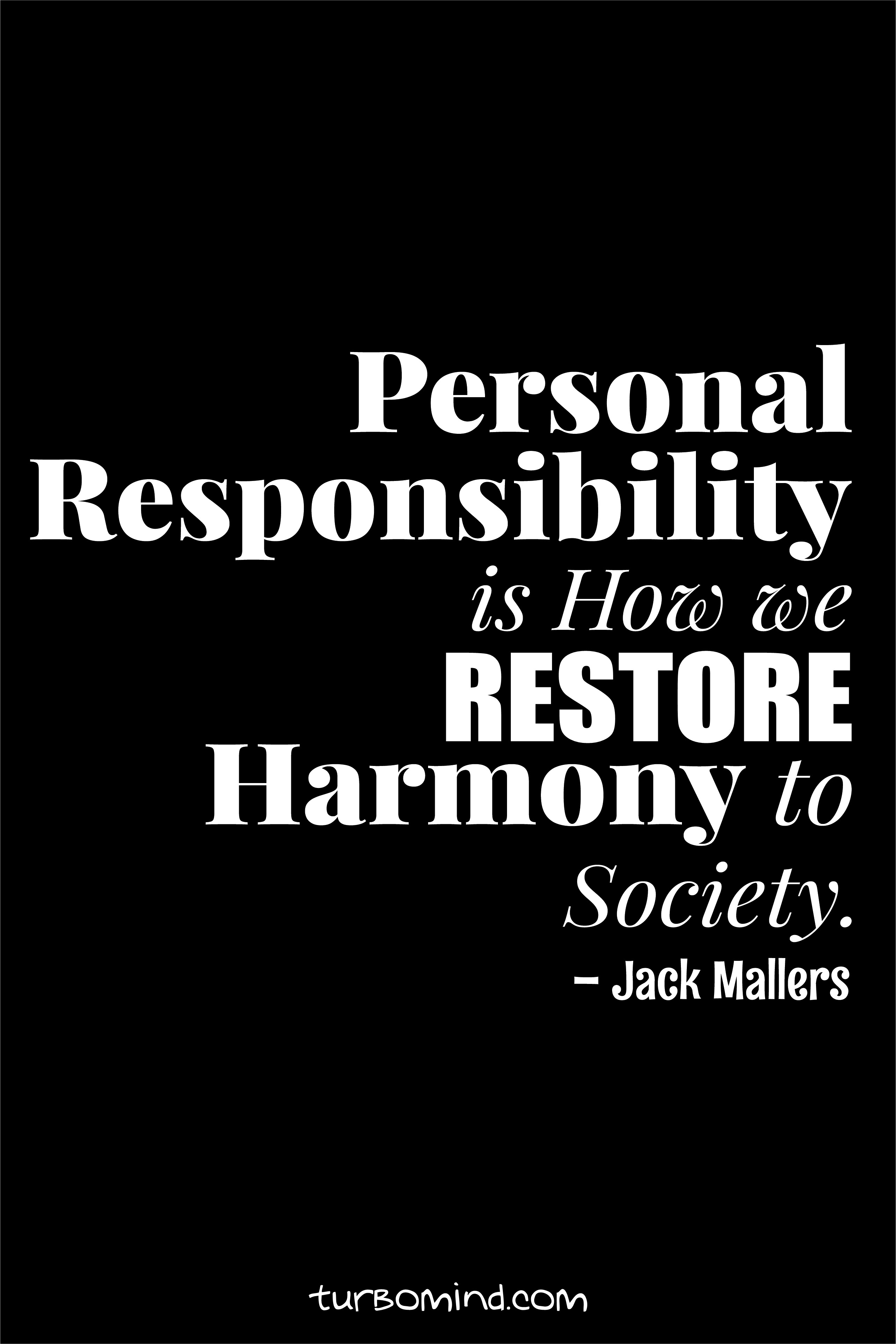 Personal Responsibility is How we RESTORE Harmony to Society. -Jack Mallers