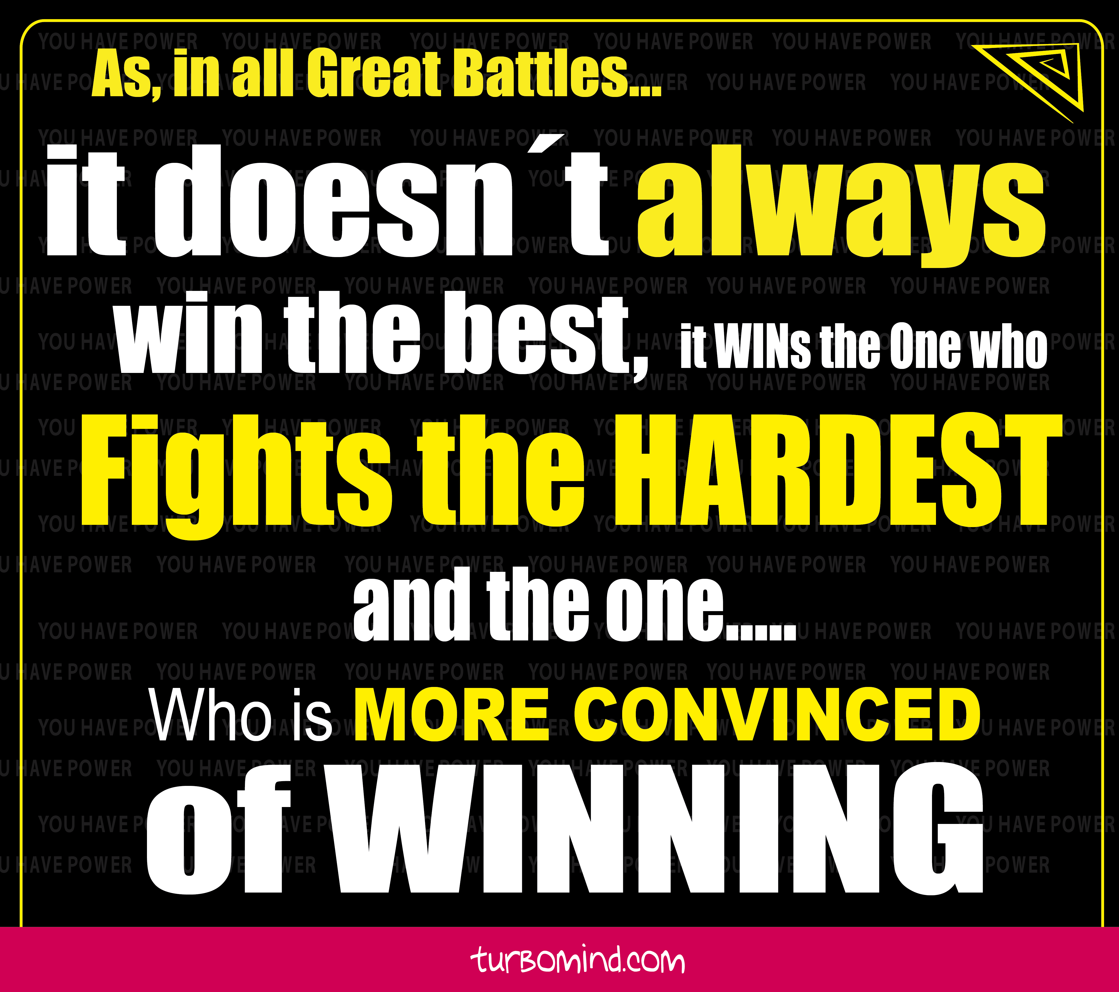 As in All Great Battles, It doesn´t Always Win the Best. It WINs the One Who Fights the Hardest and Who is MORE Convinced of Winning.