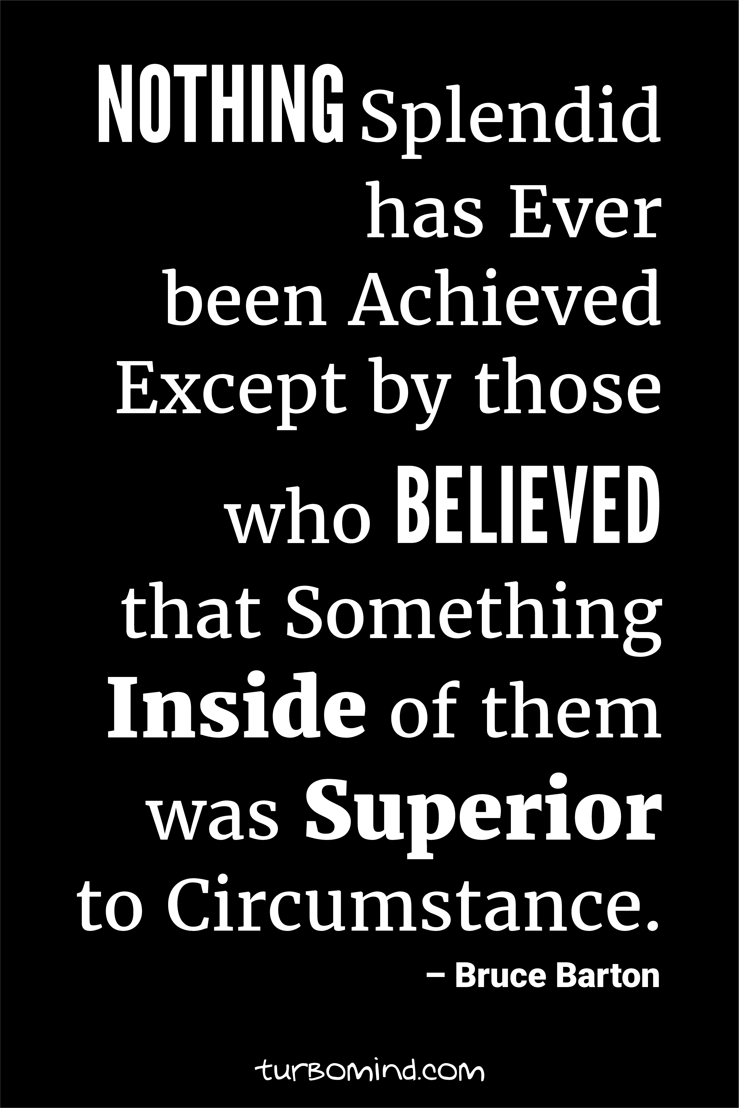 “NOTHING Splendid has Ever been Achieved Except by those who BELIEVED that Something Inside of them was Superior to Circumstance."
