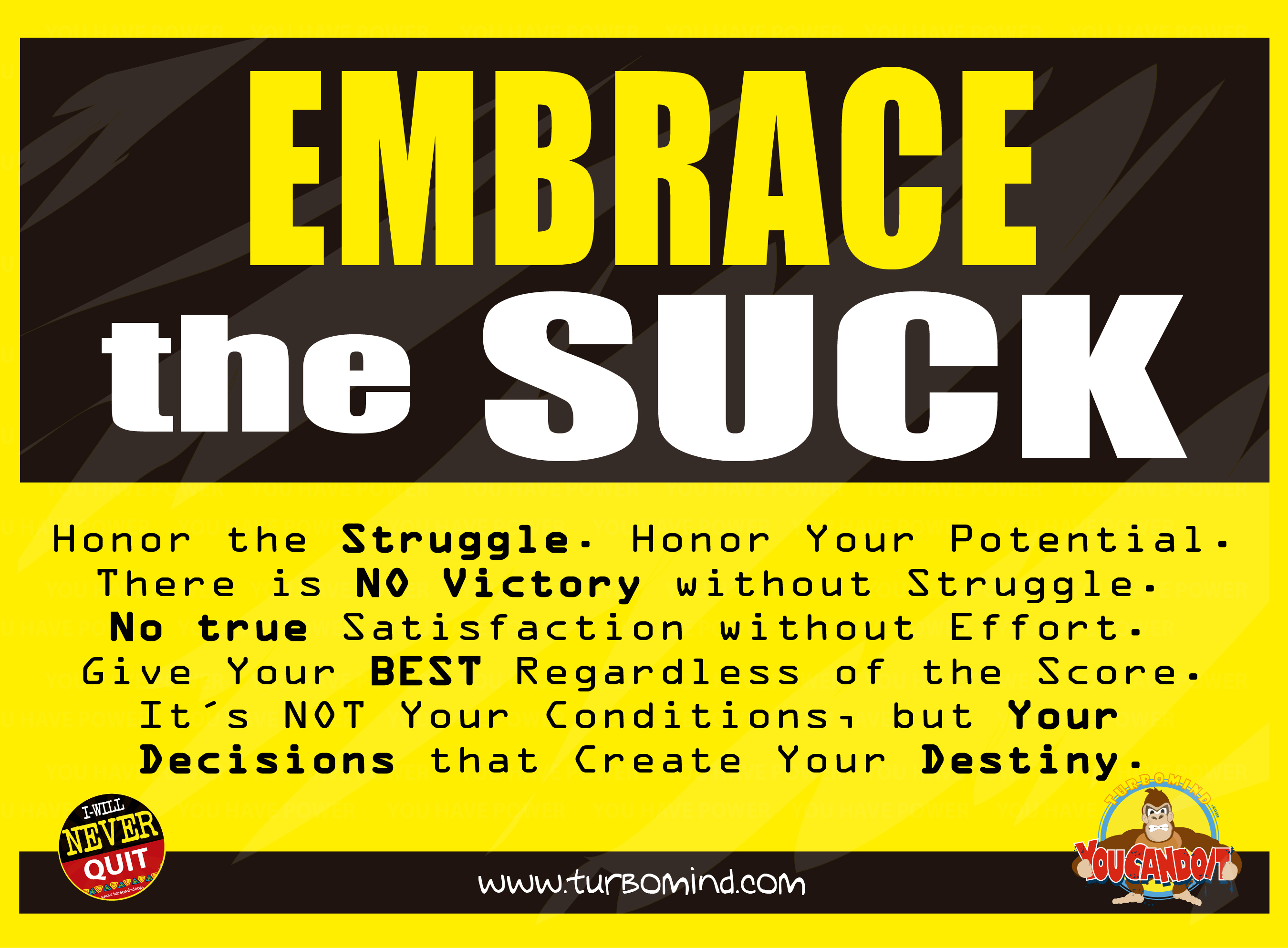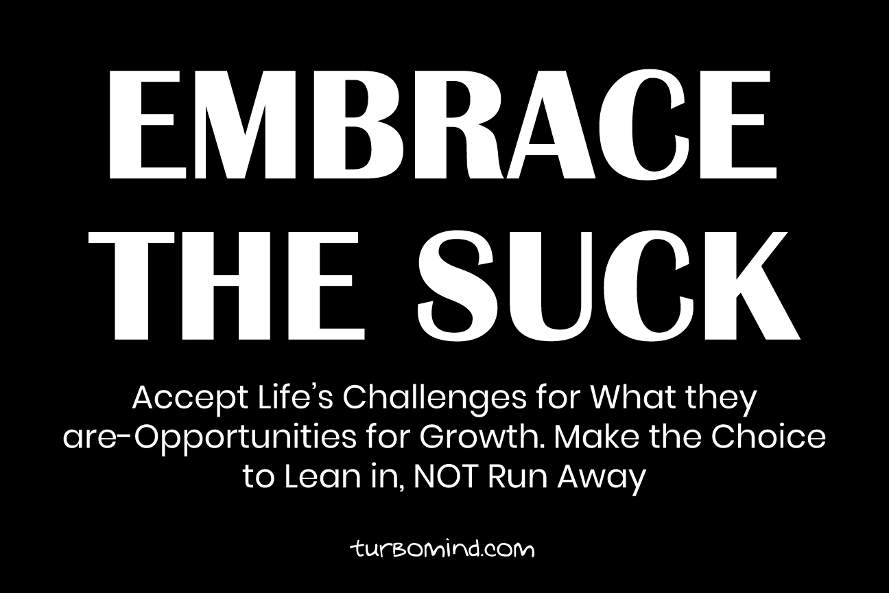 EMBRACE THE SUCK. Accept Lifeβs Challenges for What they are-Opportunities for Growth. Make the Choice to Lean in, NOT Run Away