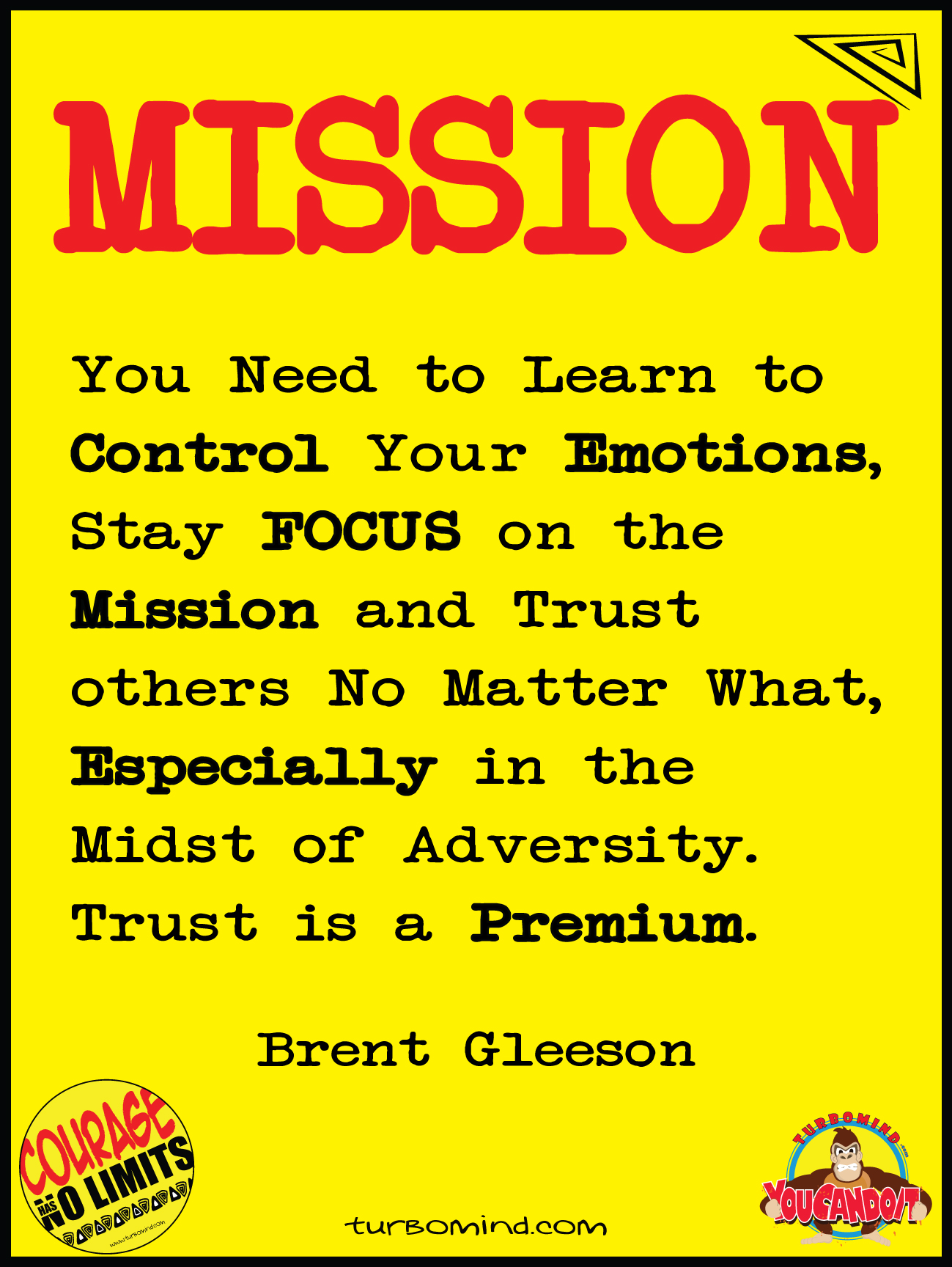 You Need to Learn to Control Your Emotions, Stay FOCUS on the Mission and Trust others No Matter What, especially in the Midst of Adversity. Trust is a Premium.