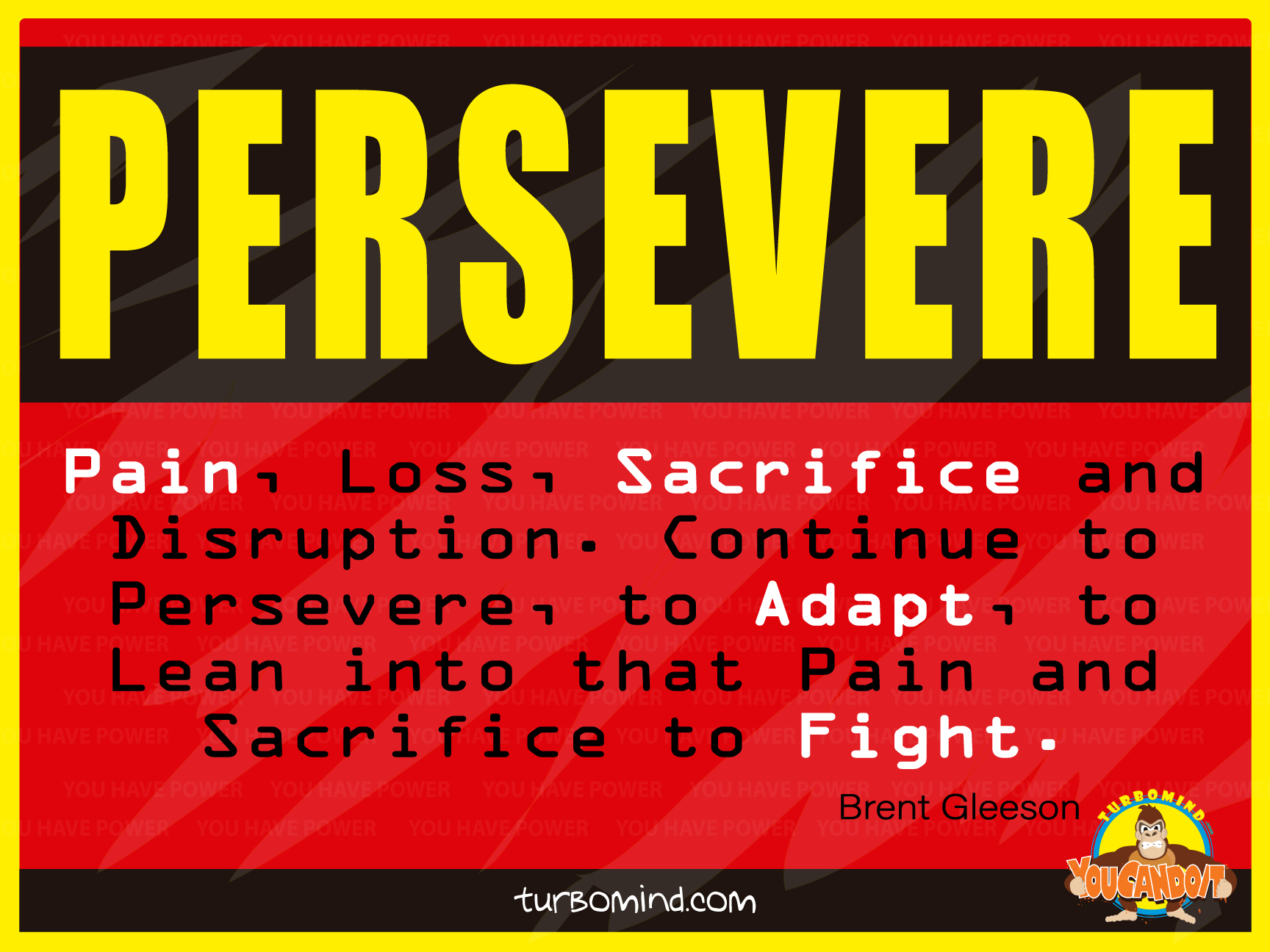 PERSEVERE Pain, Loss, Sacrifice and Disruption. Continue to Persevere, to Adapt, to Lean into that Pain and Sacrifice to Fight. Brent Gleeson