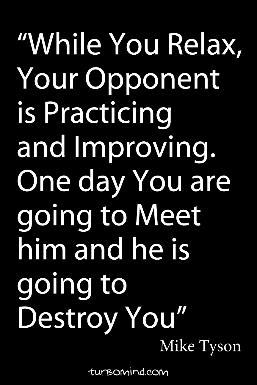 "While You Relax, Your Opponent is Practicing and Improving" Mike Tyson