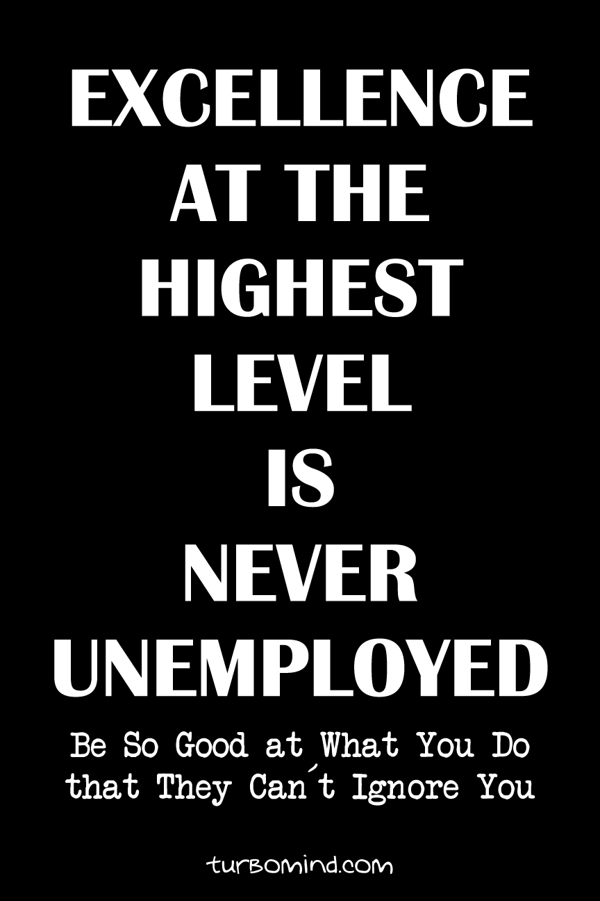 EXCELLENCE AT THE HIGHEST LEVEL IS NEVER UNEMPLOYED. Be So Good at What You Do that They CanΒ΄t Ignore You