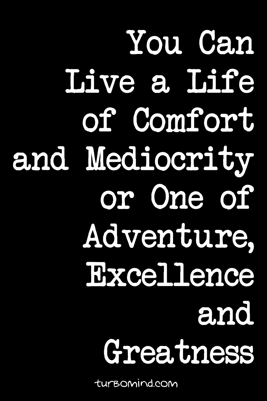 You Can Live a Life of Comfort and Mediocrity or One of Adventure, Excellence and Greatness