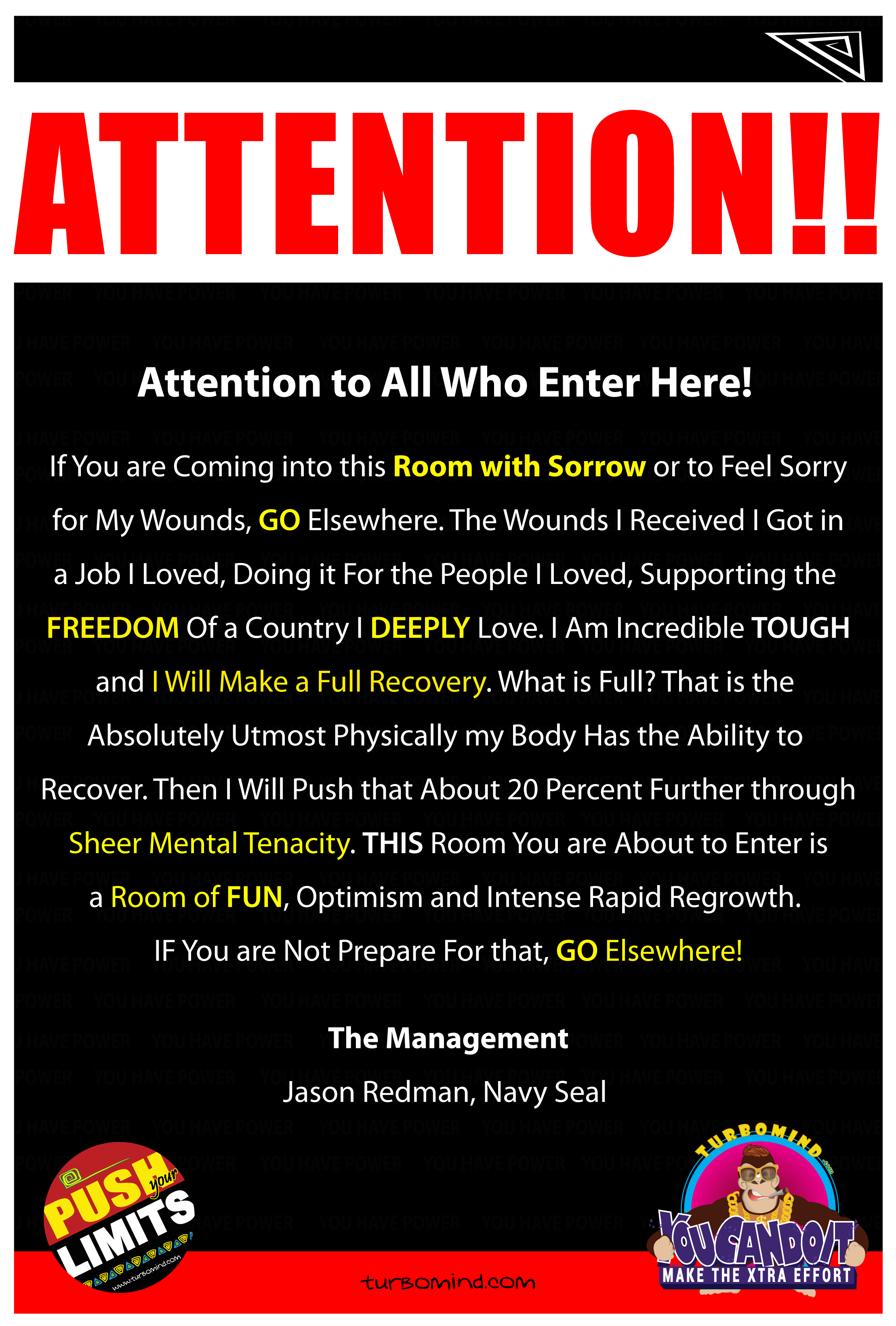 Attention to All Who Enter Here! If You are Coming into this Room with Sorrow or to Feel Sorry for My Wounds, GO Elsewhere.