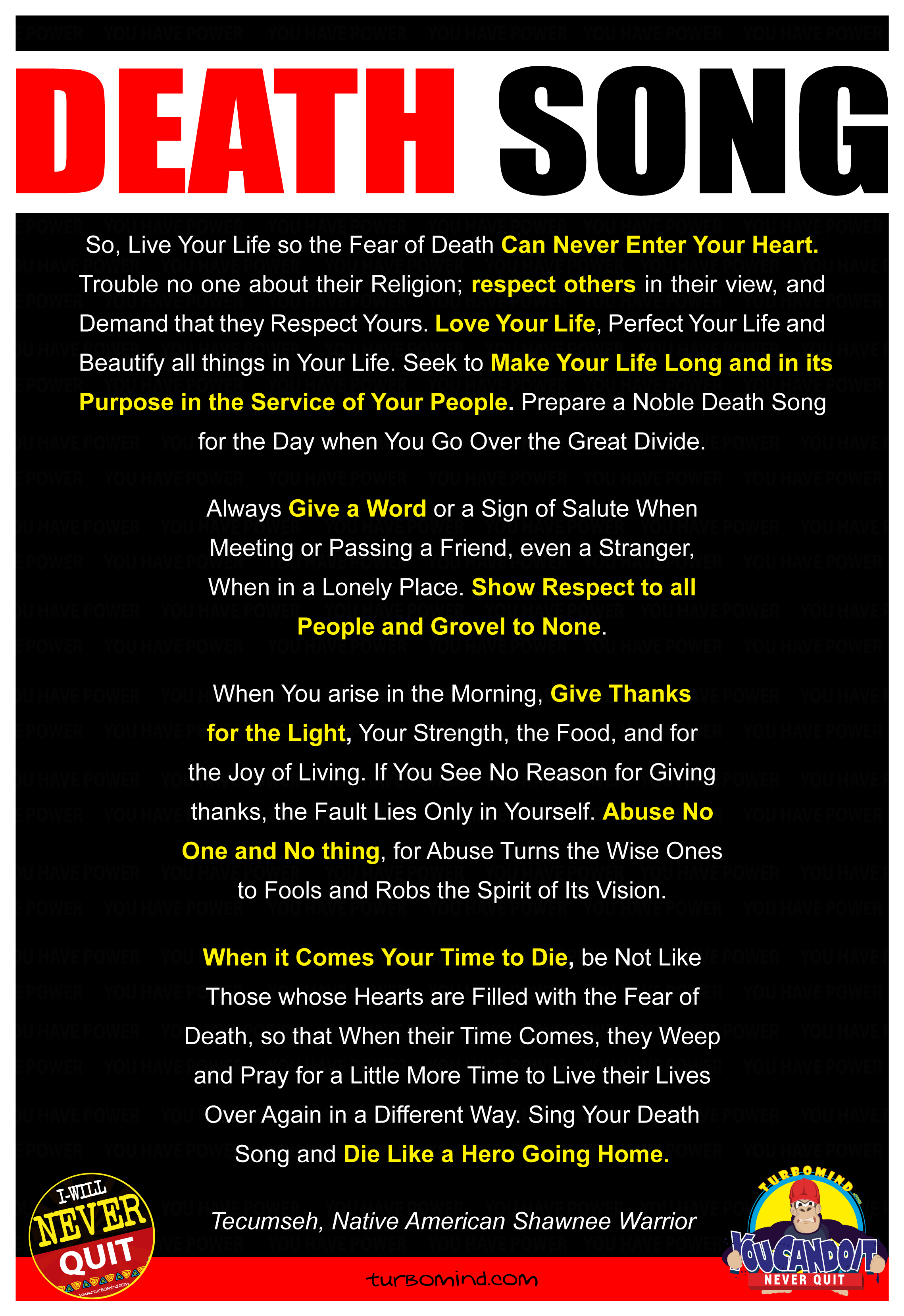 So, Live Your Life so the Fear of Death Can Never Enter Your Heart.