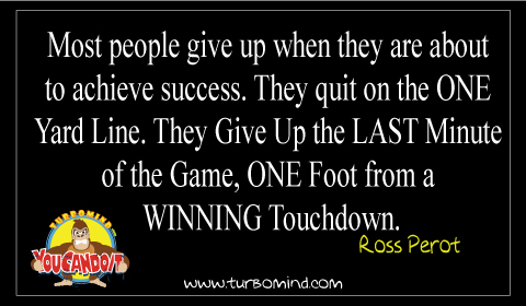 Most People Give Up when they are About to Achieve Success. They Quit on the One Yard Line