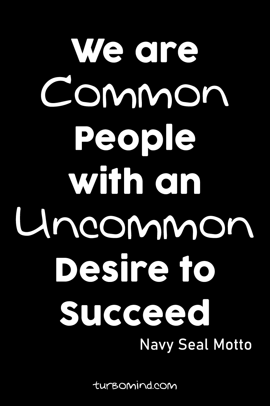 We are Common People with an Uncommon Desire to Succeed. -Navy Seal Motto