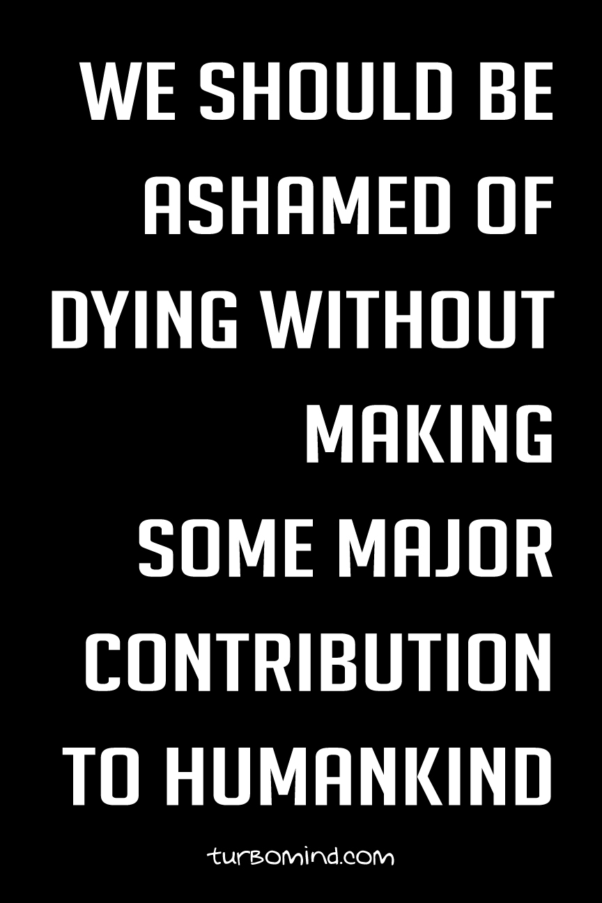 We should be ashamed of dying without Making Some Major Contribution to Humankind