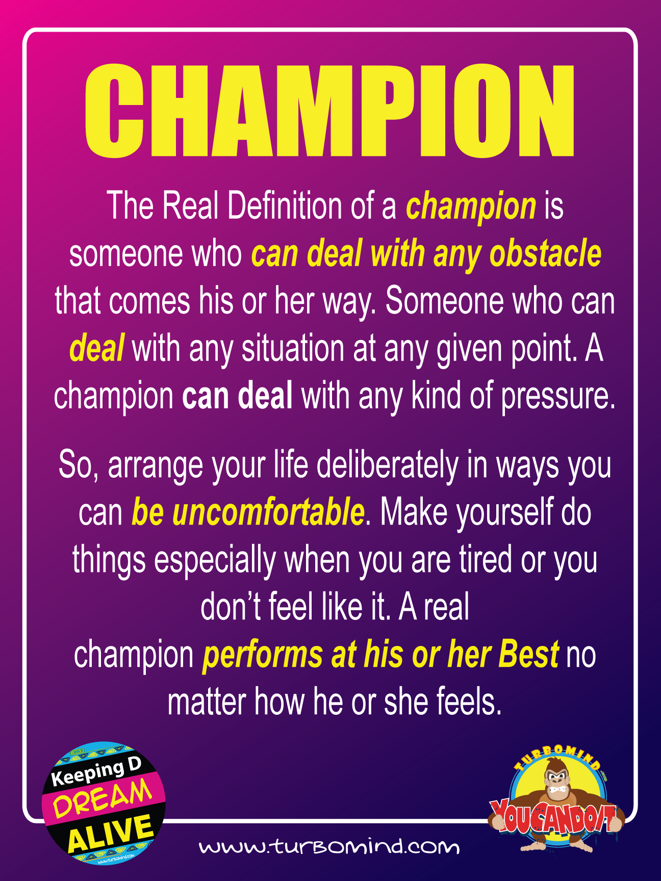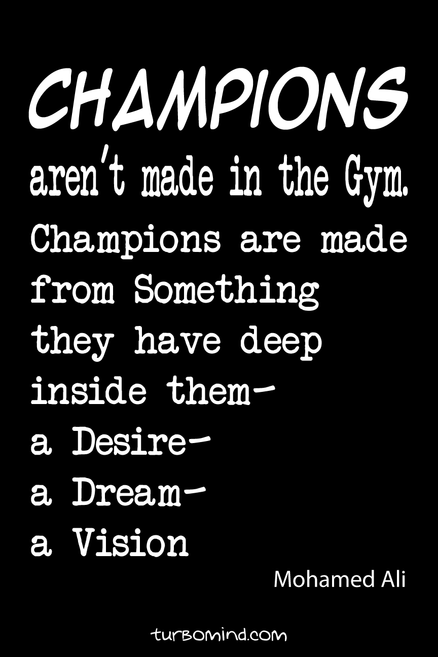 Champions arenβt made in the Gym. Champions are made from Something they have deep inside them-a Desire-a Dream-a Vision.