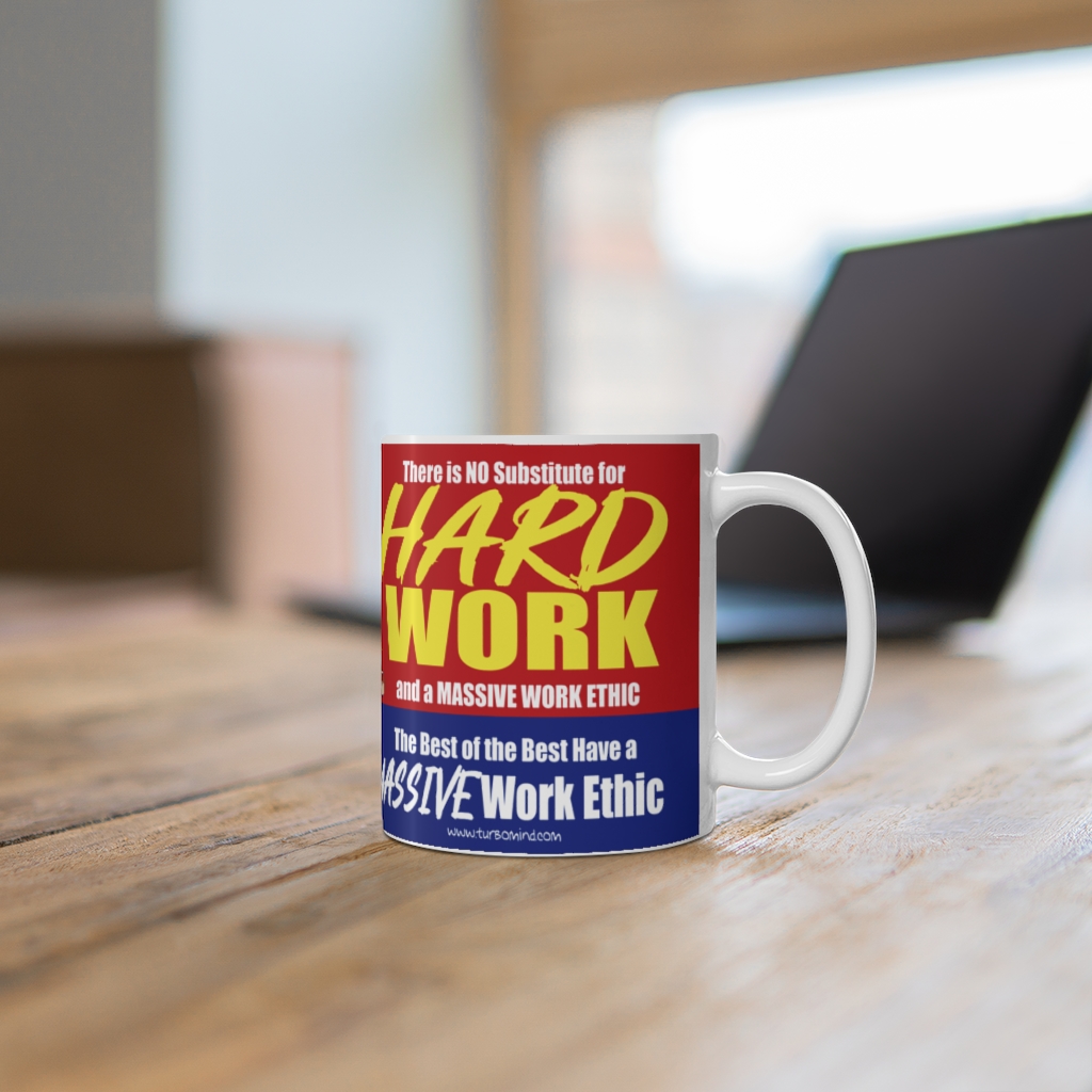 NO SUBSTITUTE FOR HARD WORK-RED AND BLUE MUG