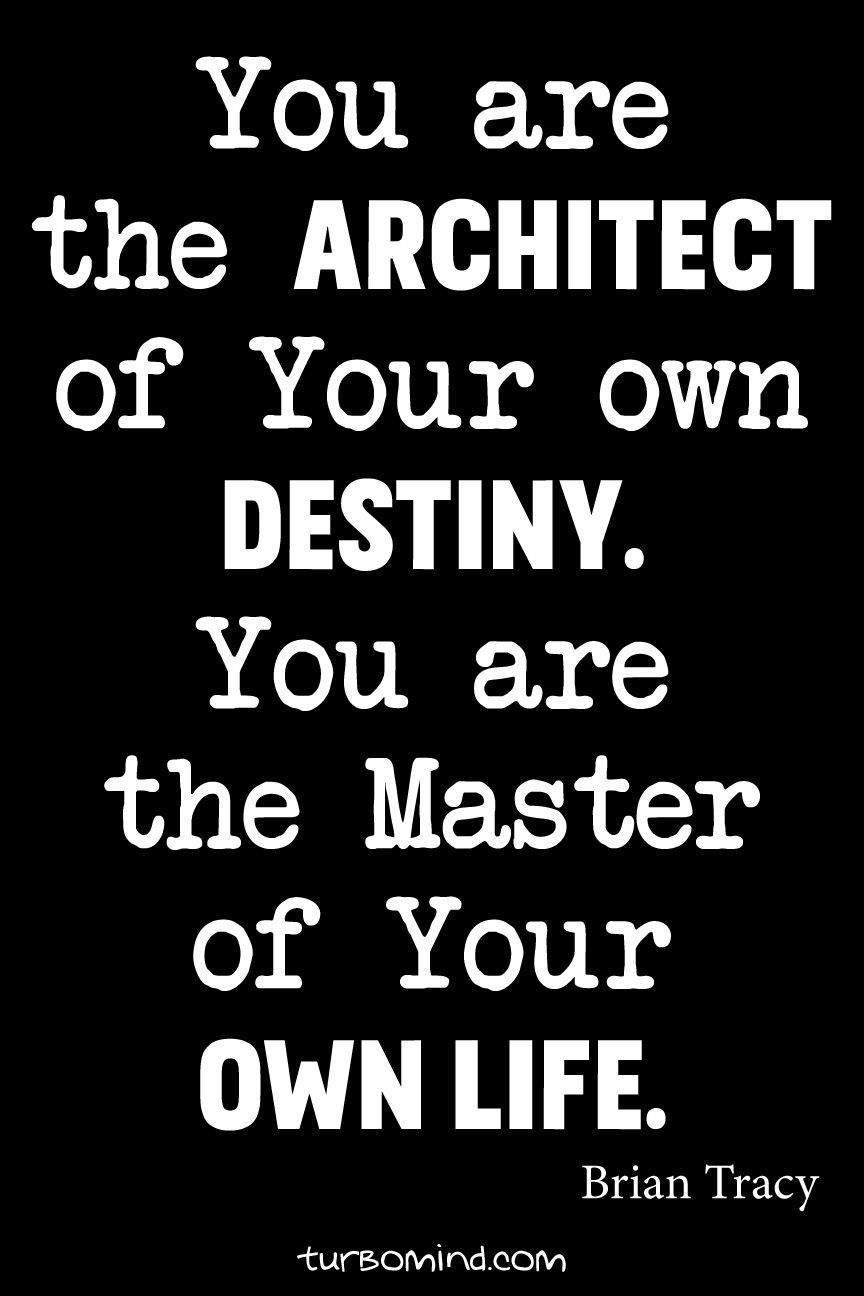 You are the Architec of Your Own Destiny. ou are the Master of Your Own Life. Brian Tracy
